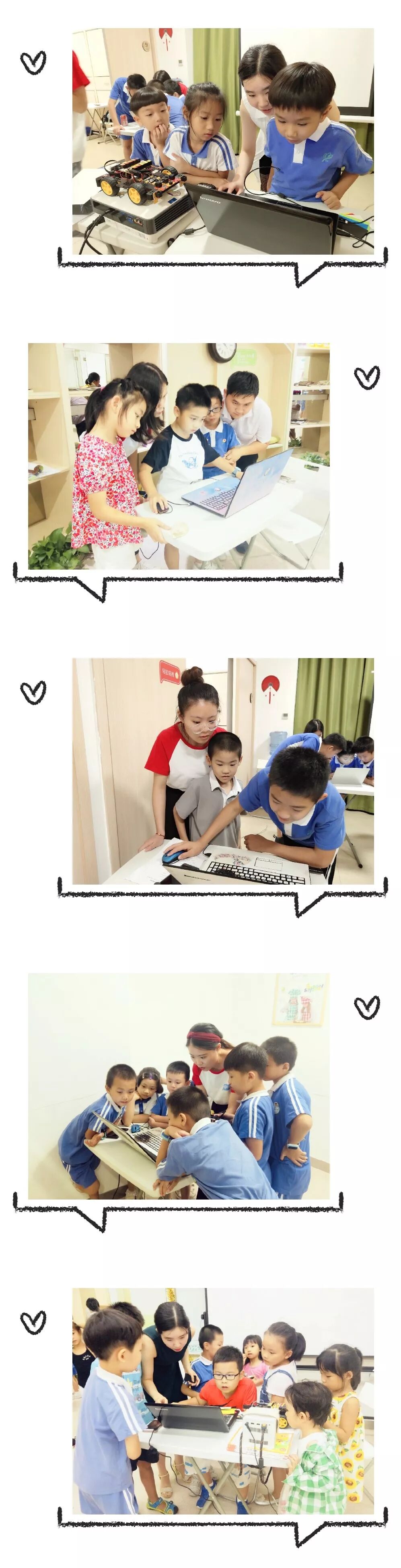 孩子们分成了几个小组进行了编程体验